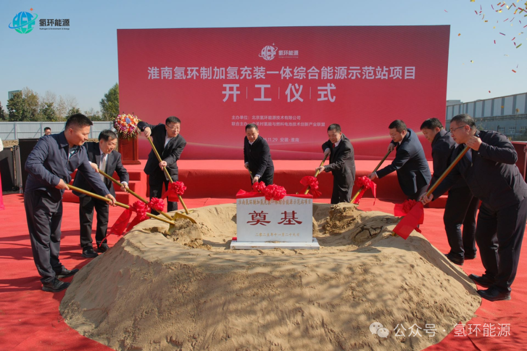 11月29日,淮南氢环制加氢充装一体综合能源示范站项目开工仪式在安徽省淮南市田家庵区隆重举行。该项目由北京氢环能源技术有限公司全资子公司——安徽氢环能源技术有限公司投资建设,核心技术采用氢环能源自主研发的HEE-500沼气制氢机(生物燃气制氢设备),是氢环能源在华东区域布局的首个集“制氢、加氢、充装、加油、充电”于一体的多能互补综合能源示范站,该项目的正式开工标志着氢环能源在分布式绿氢供应体系建设中迈出关键一步。